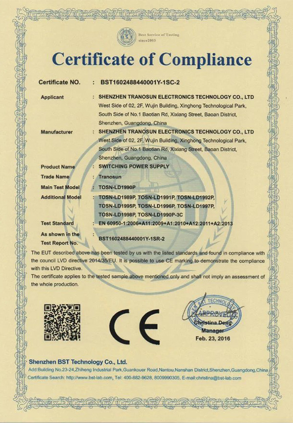 TOSN-LD1990P-CE-LVD certificate